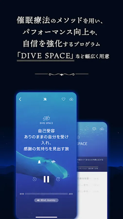 ・ Meditation program "DIVE SPACE" that uses hypnosis methods to improve work performance and strengthen the image of self-confidence and success.