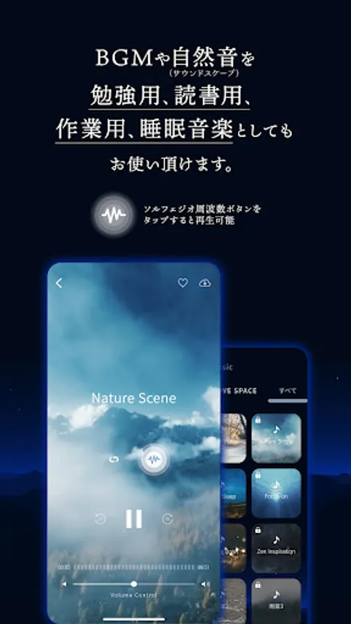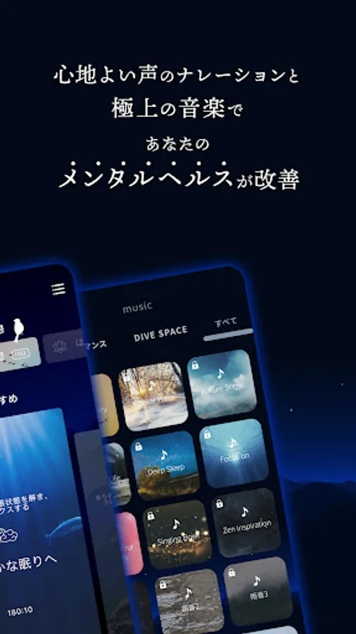 We provide the finest meditation sessions (mental journeys) and sleep experiences that combine meditation music and BGM composed and recorded by specialists in natural music and ambient music.