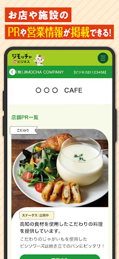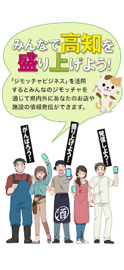 As part of the "Regional Future Digitization Contribution Project" that Kochi Credit Bank is working on as a project for the 100th anniversary of its founding, Minna no Jimocha and Jimocha Business are (1) making a platform for regional information and (2) contributing to digitization for local businesses. , ③ It is a regional portal application developed and provided with the goal of creating commercial distribution in the region.