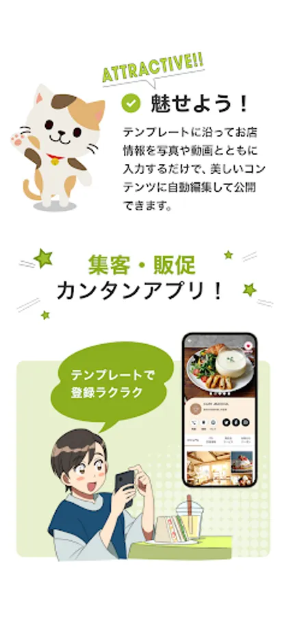 Basic information of stores and facilities, PR information, product / service information, notification information, coupon information