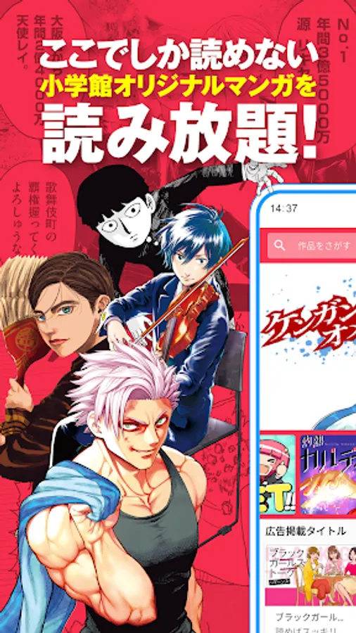 There are various genres of manga such as sports, battle, fantasy, suspense, gag, daily life, romance, and underground, so you are sure to find your favorite work.