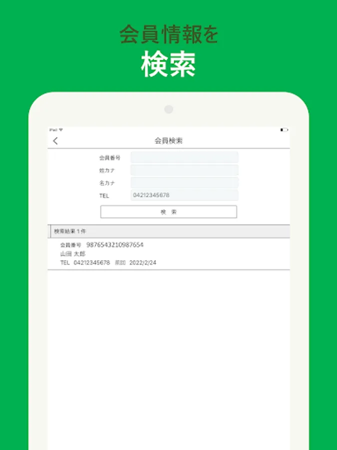 Points can be operated by searching from the registered customer's member number, name or phone number.