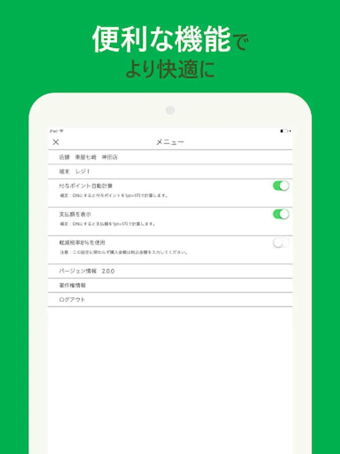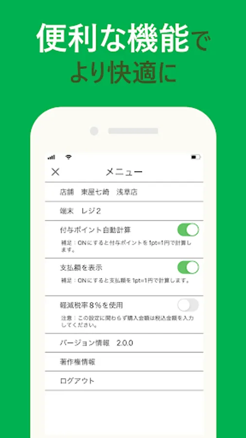 Points can be automatically calculated from the purchase amount, and the payment amount can be calculated as 1 point for 1 yen when the points are used.
