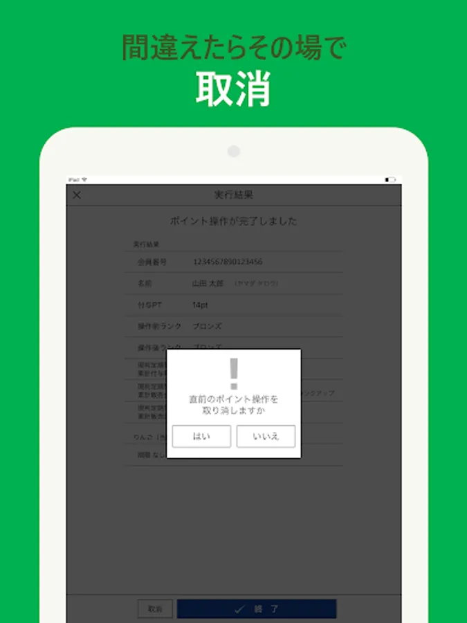 Within a certain period of time, you can also cancel the point operation by reading the QR code printed on the receipt.