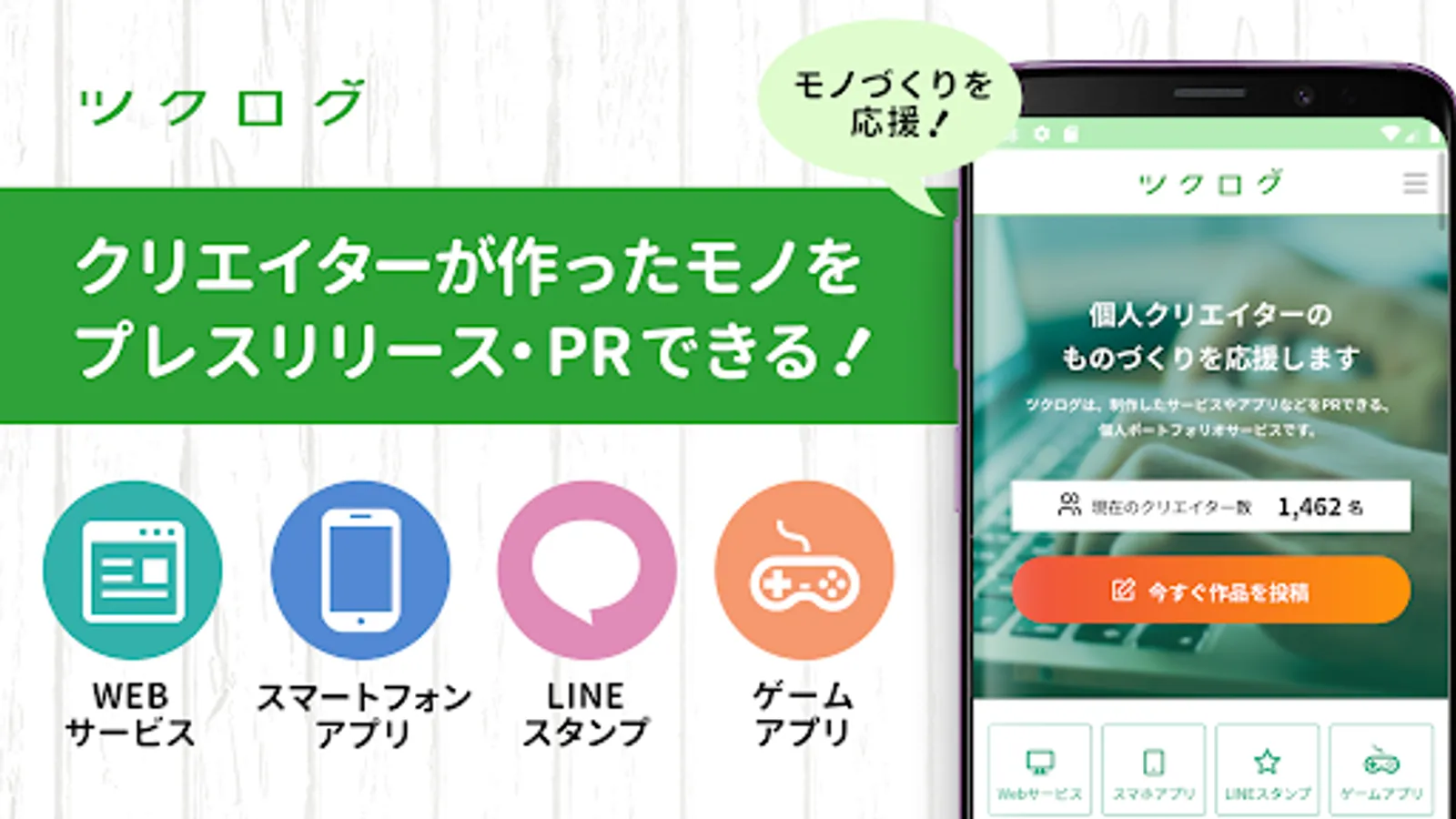 Tsukulog is an application that can promote personally developed web services, smartphone applications, LINE stamps, etc.