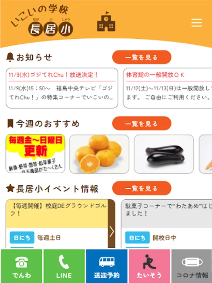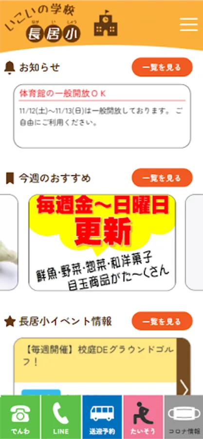 Various information useful for using Nagai Elementary School, such as facility events, information on ground golf, and introductions to this week's recommended products, are posted.