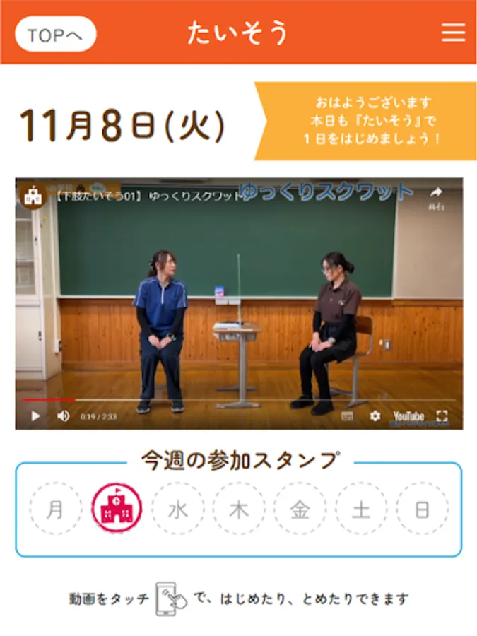 In addition to supporting everyone's health by delivering "Taiso" that you can participate in once a day when you like,