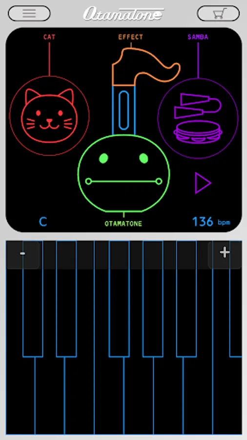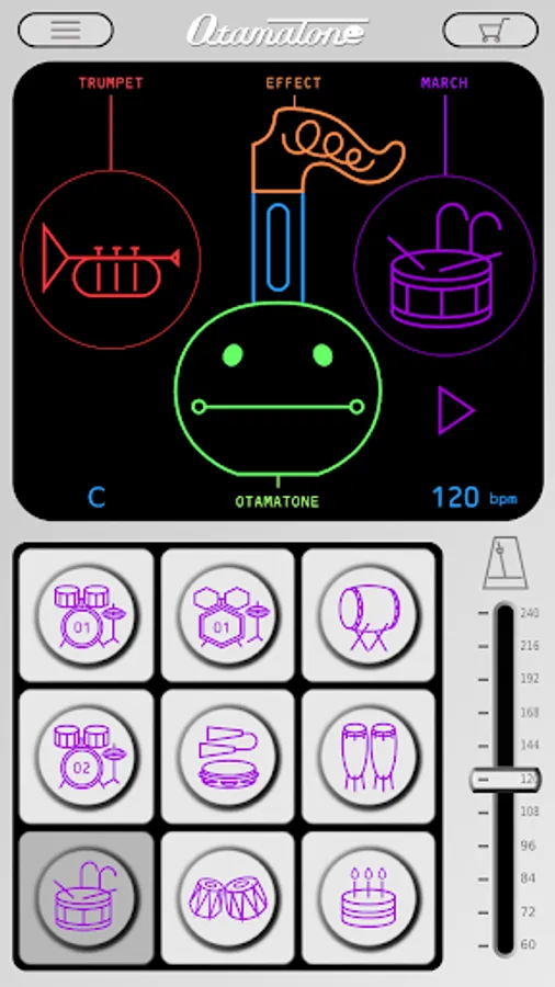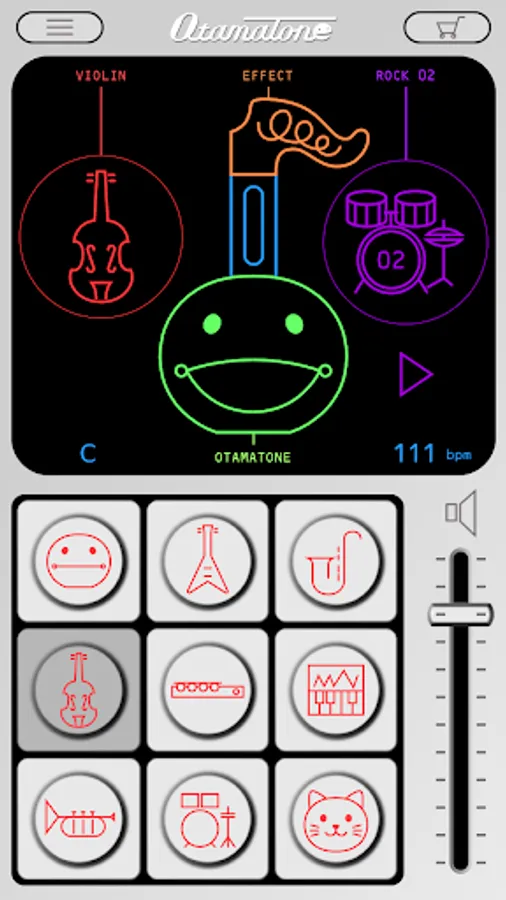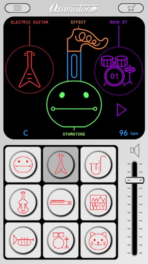 Connect your Otamatone Techno or Otamatone neo to a smartphone, start Otamatone Studio and play your Otamatone with the sound of various instruments or jam along to built-in rhythms.