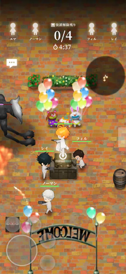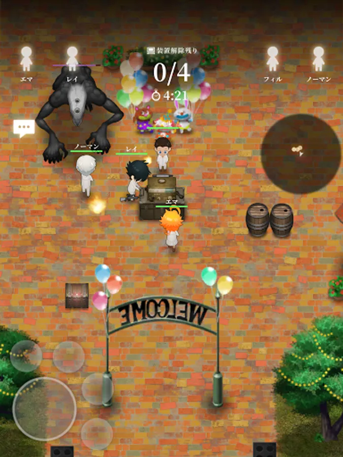 You can defeat demons while cooperating with other players who matched in real time, search for an exit, and enjoy co-op play with other players while enjoying the world view of "The Promised Neverland".