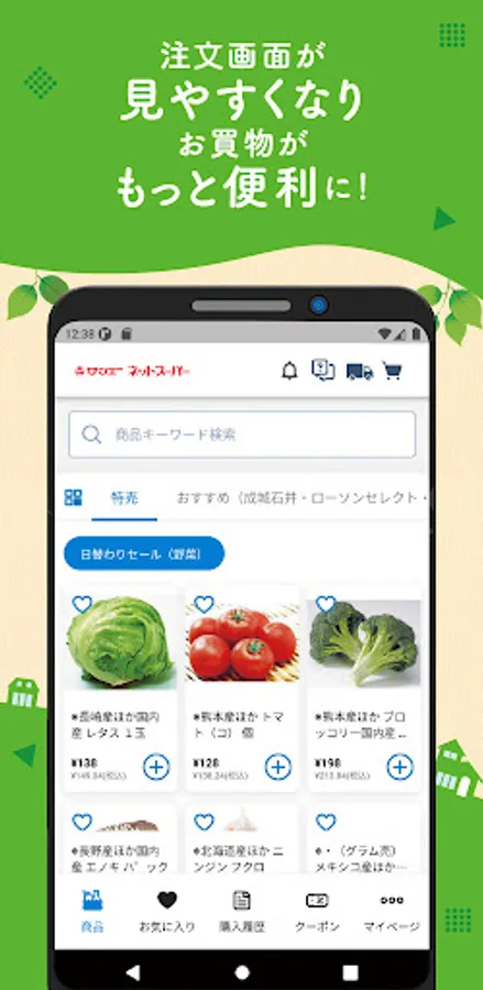 ・Frequently purchased items can be quickly ordered by registering them as favorites.