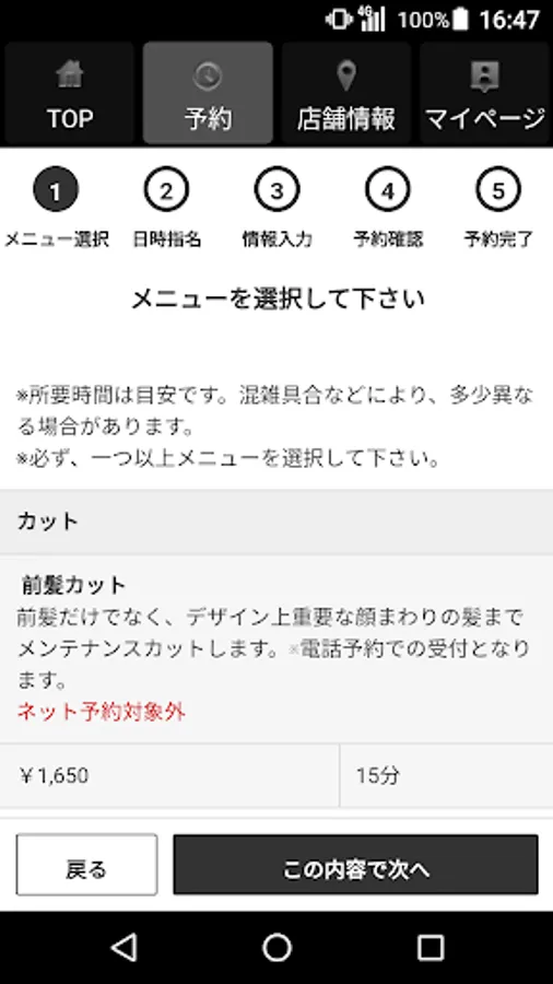 You can check and cancel the reservation status from My Page. Since staff can be registered, if you register a person in advance, you can make a smooth nomination reservation from My Page.