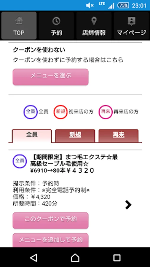 Discount coupons are delivered. Because it can also be reserved in coupon use at the time of net book is also the time of coming to the store you can massage smoothly.