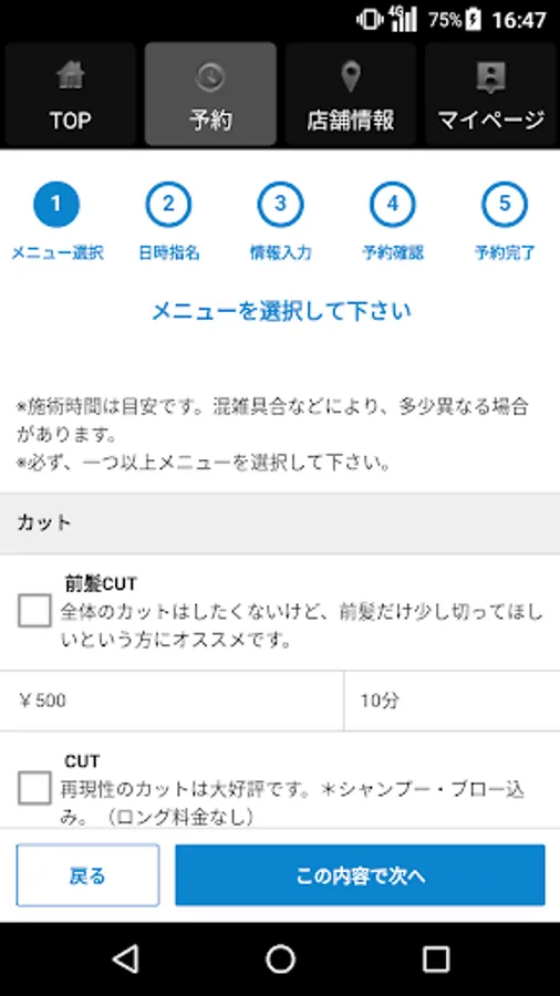 You can check the reservation status and cancel it from My page. Staff registration is possible so if you register your contact in advance, you can make a smooth appointment from My Page.