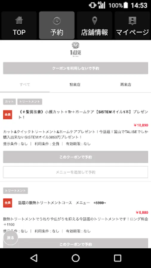 A great coupon will be delivered. You can make reservations using coupons when making online reservations, so you can perform treatment smoothly when you come to the store.