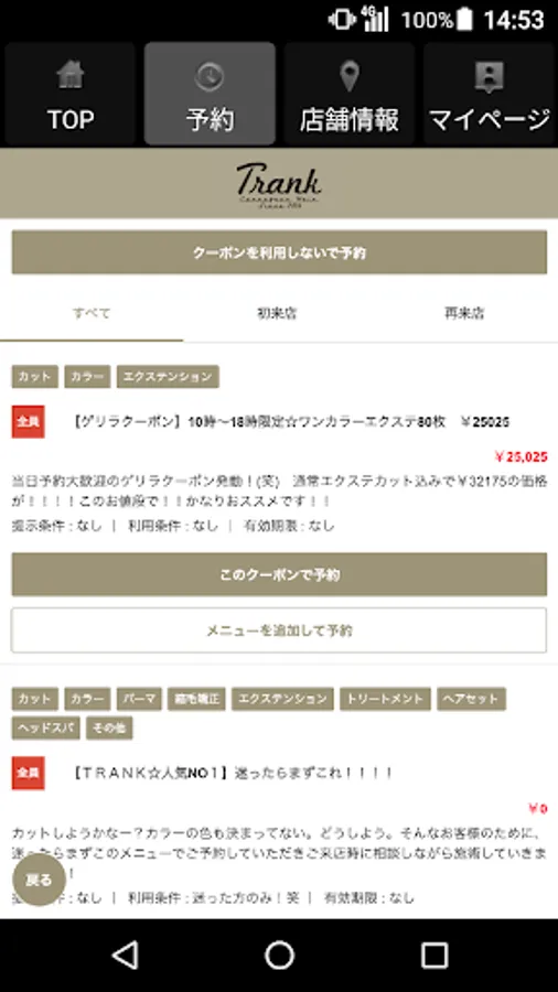 A great coupon will be delivered. You can also make reservations using coupons when making online reservations, so you can perform treatment smoothly when you come to the store.
