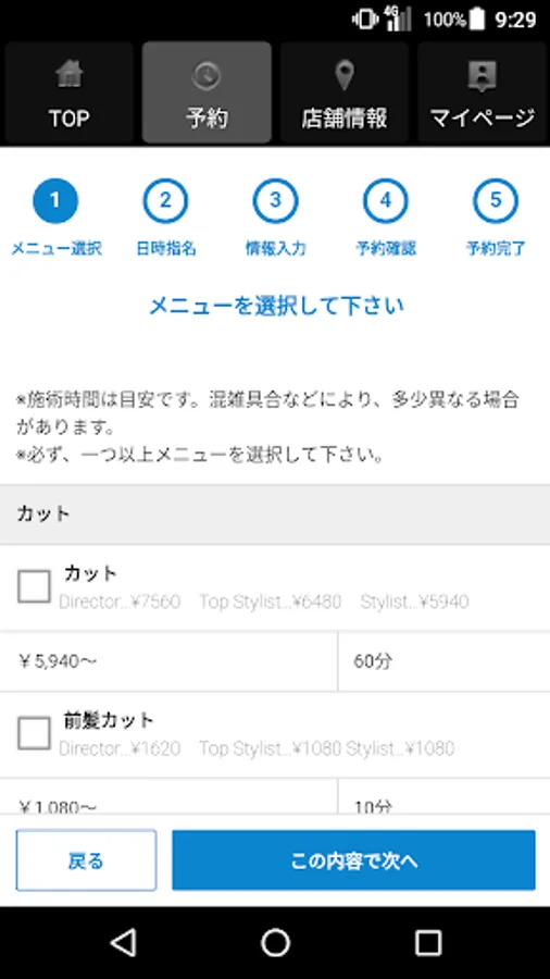 You can check the reservation status and cancel it from My page. Staff registration is possible so if you register your contact in advance, you can make a smooth appointment from My Page.