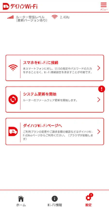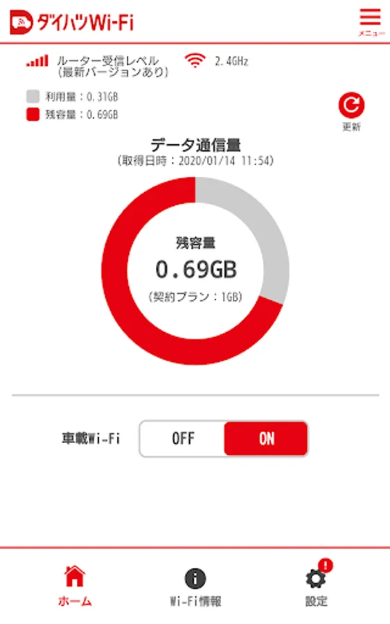 "Daihatsu Wi-Fi" is a dedicated app that allows you to control and check the status of in-vehicle Wi-Fi routers provided by Daihatsu Industries.