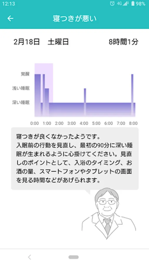 ・When you sleep with your smartphone on your bedside, it will automatically measure your sleep time, and even if you sleep while listening to relaxing sounds, it will automatically detect that you fell asleep and stop automatically.