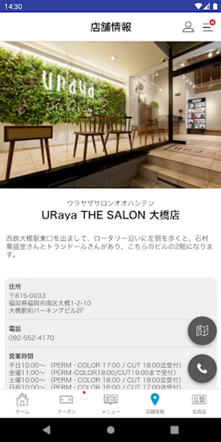 You can easily call the salon with one tap.