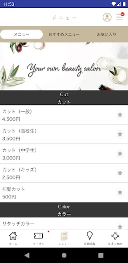 You can check and make reservations for menus, hairstyles, and desired time zones.