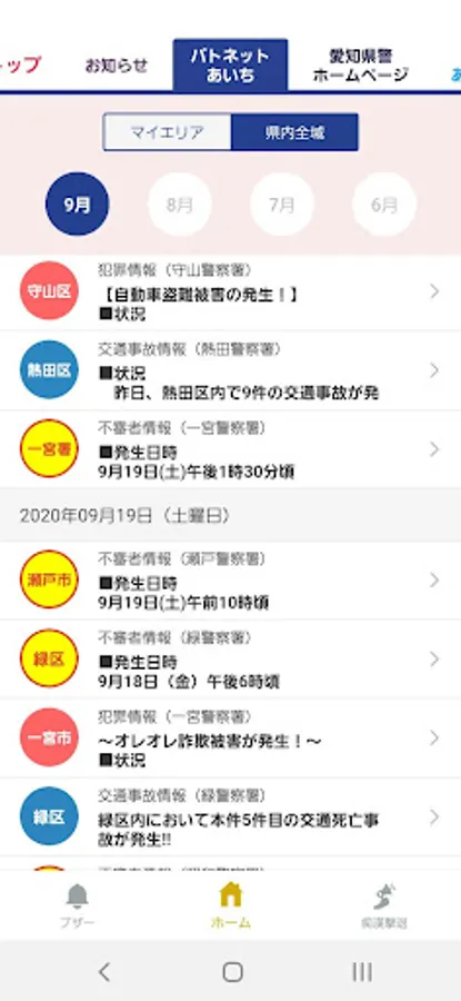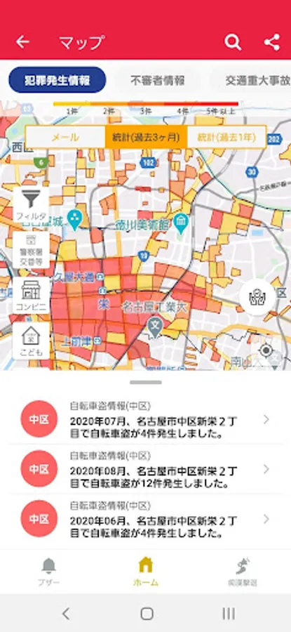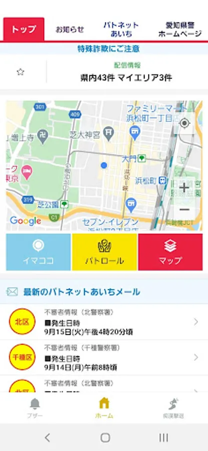 "Aichi Police" was born in 2017 as a "rip-off damage prevention app", but in the new app, "crime occurrence information", "suspicious person information", "traffic serious accident occurrence information", etc. are released on the map, Aichi The distribution information of the prefectural police e-mail magazine "Patnet Aichi" will also be immediately reflected on the map.