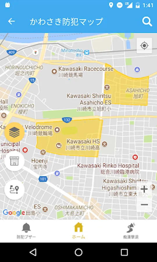 あらかじめ知りたい犯罪・地域を登録。皆さまへ通知機能と地図表示でお知らせします。お近くの交番や警察署の検索機能、防犯ブザーも搭載。