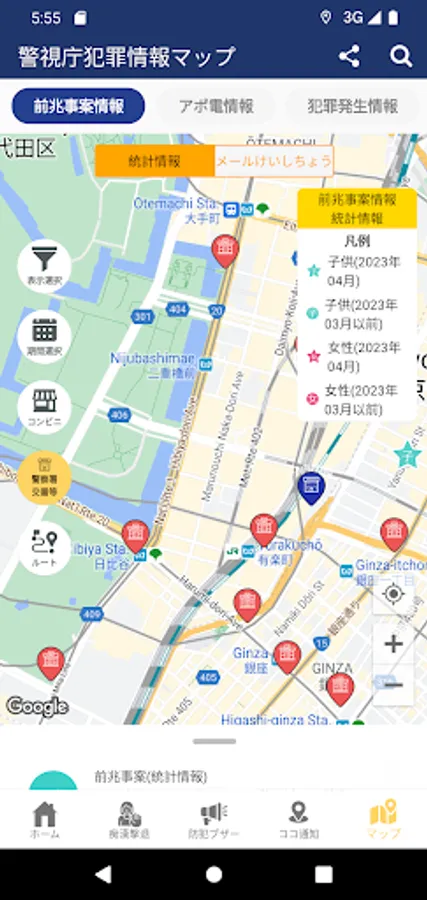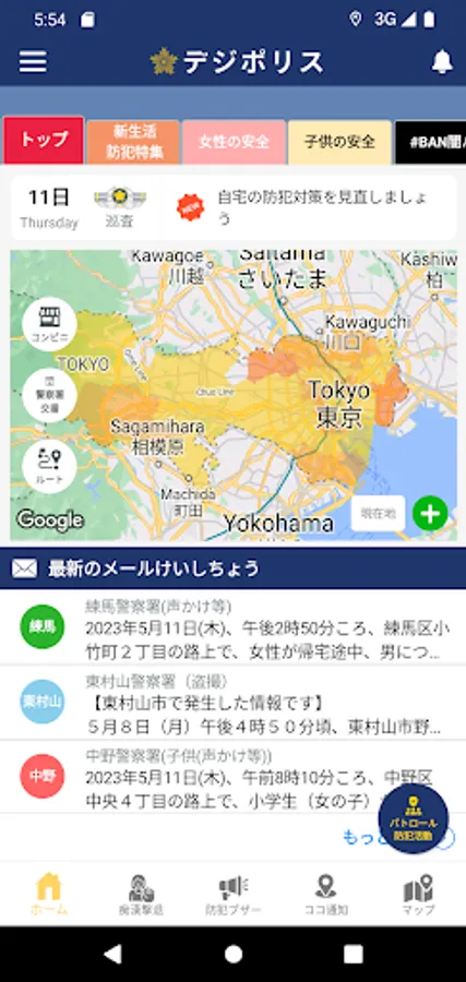 In DigiPolice, when you set My Area, the crime occurrence status of the set area is displayed on the top screen.