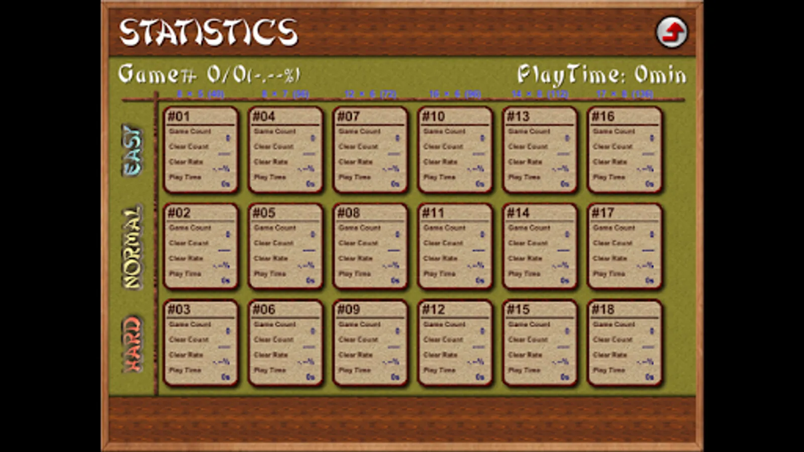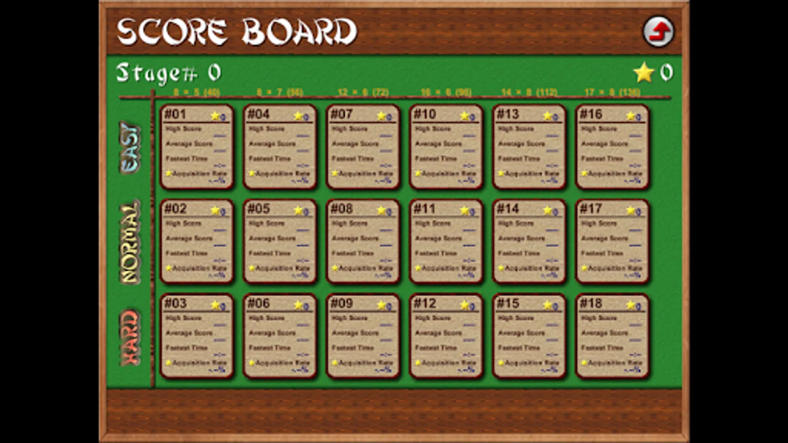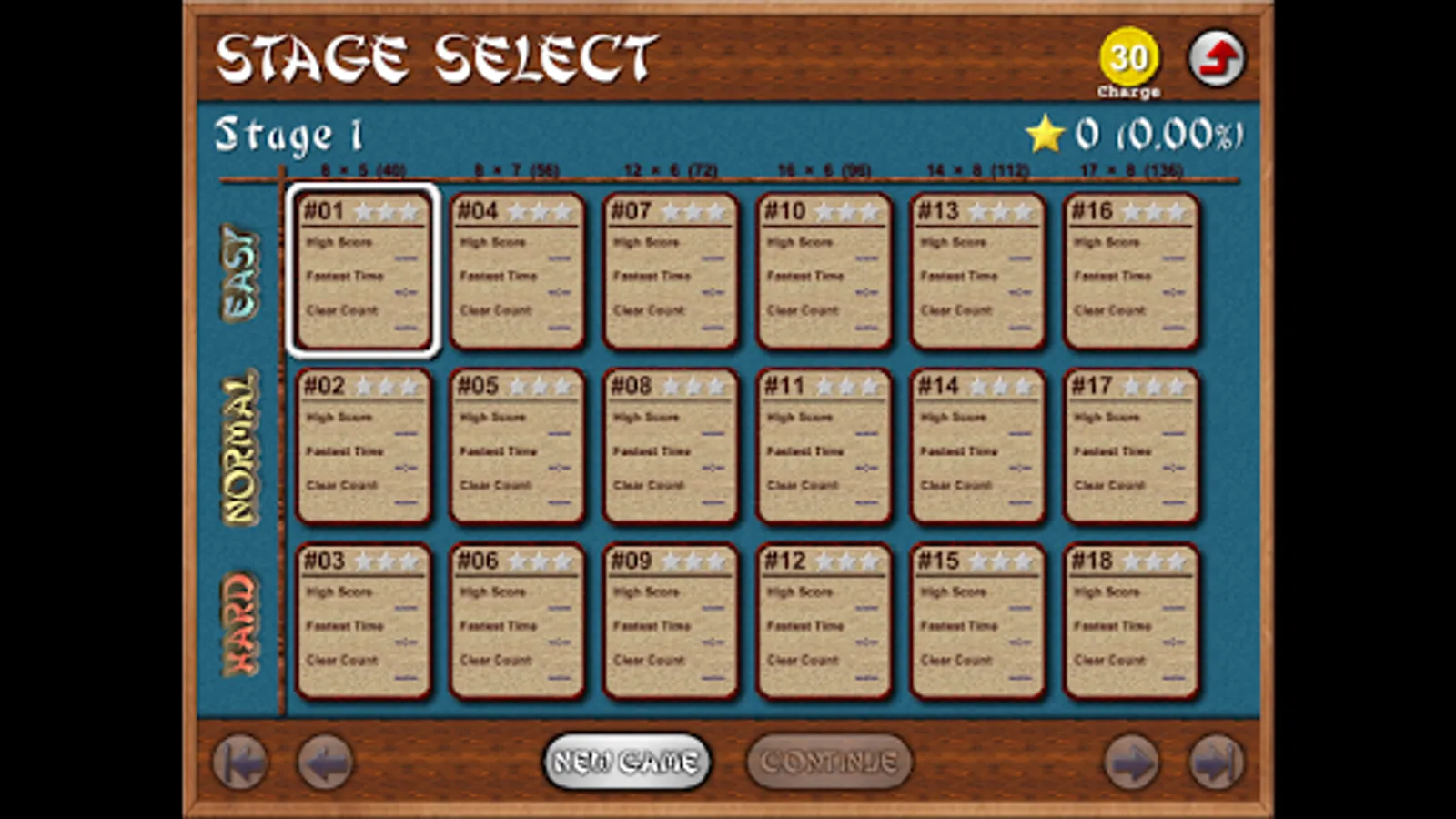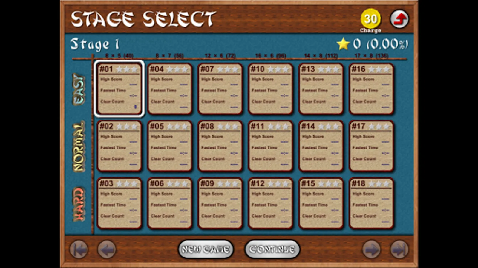 1) 18 different game difficulty levels: easy, normal, difficult, × tile arrangement size