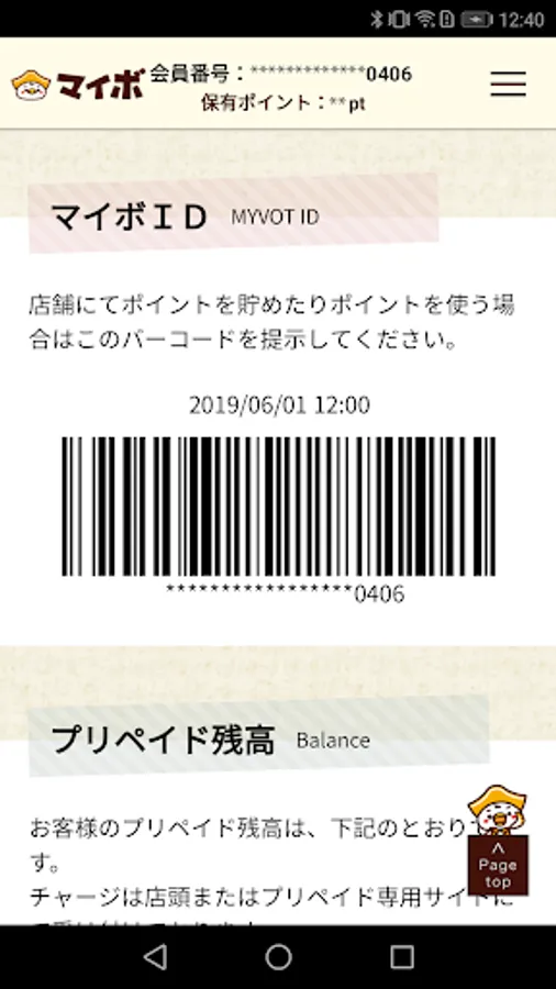 Display of membership card from new member registration. You can check the balance display of points and prepaid .
