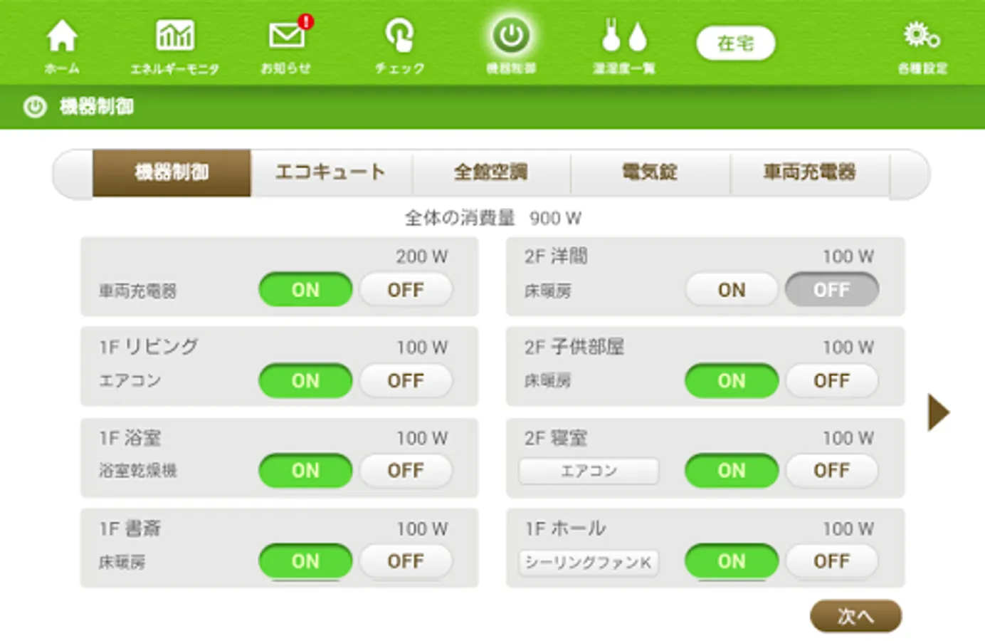 Using a tablet device or smartphone, you can see how much energy is consumed by which room now, and how much energy is used by which room / device so far from various perspectives. It will be like * 4.
