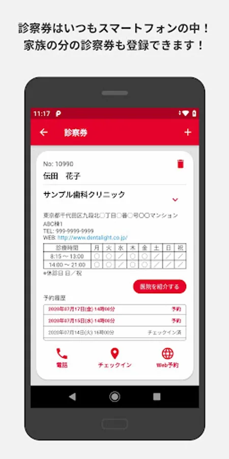 You can make phone calls and receive notifications from the dental clinic from this app.