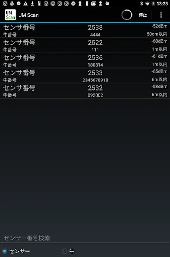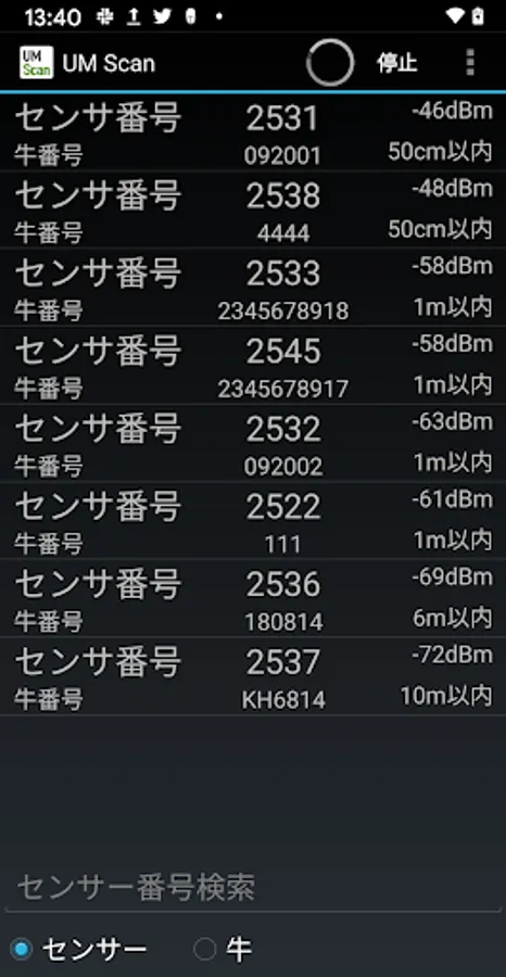 You can check the sensor number by holding the application installed terminal over the U-motion® sensor whose number you do not know.