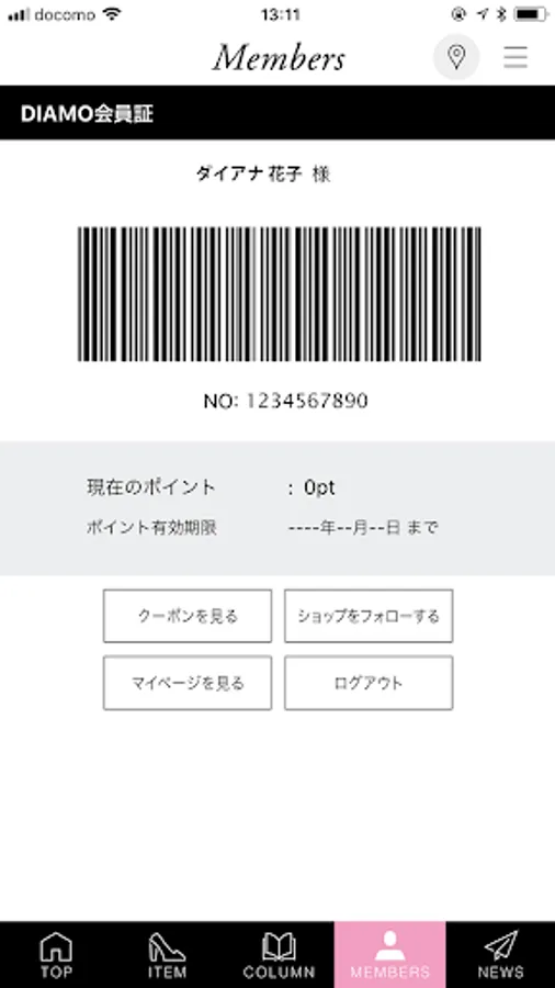 ◆ nationwide DIAMO member object shop and web shop common membership card is available, you can check the balance of the common "Diana point".