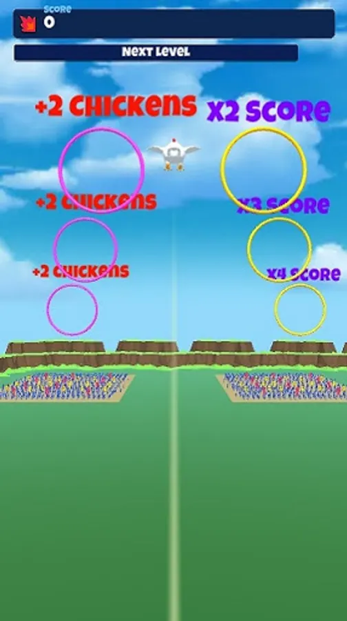 Collect bonuses along the way such as score multipliers, additional chickens and size boosts!