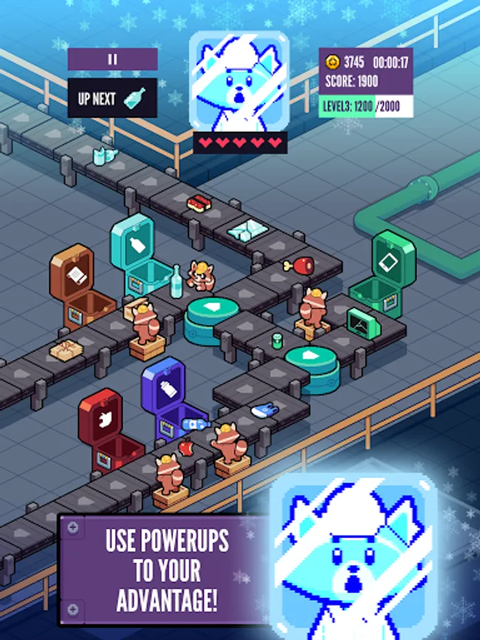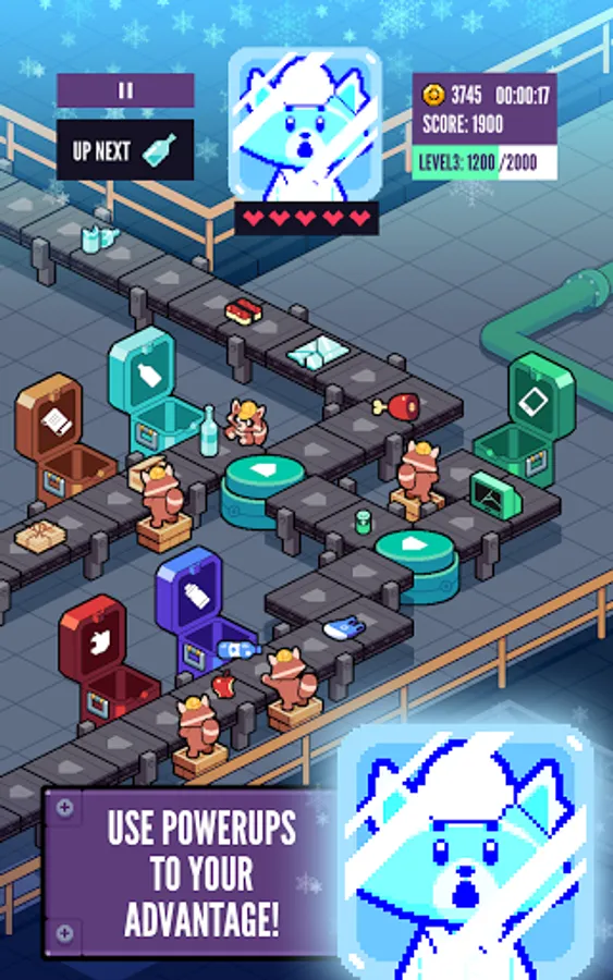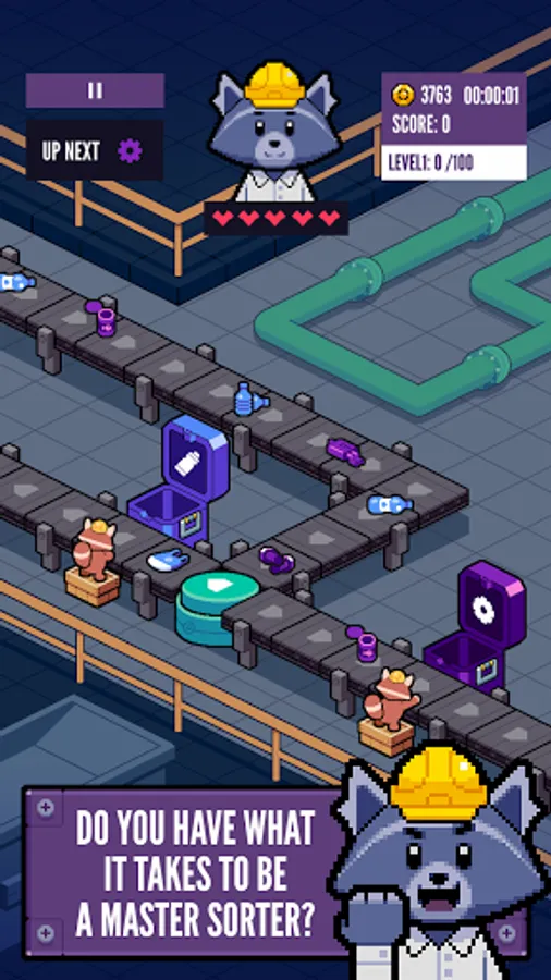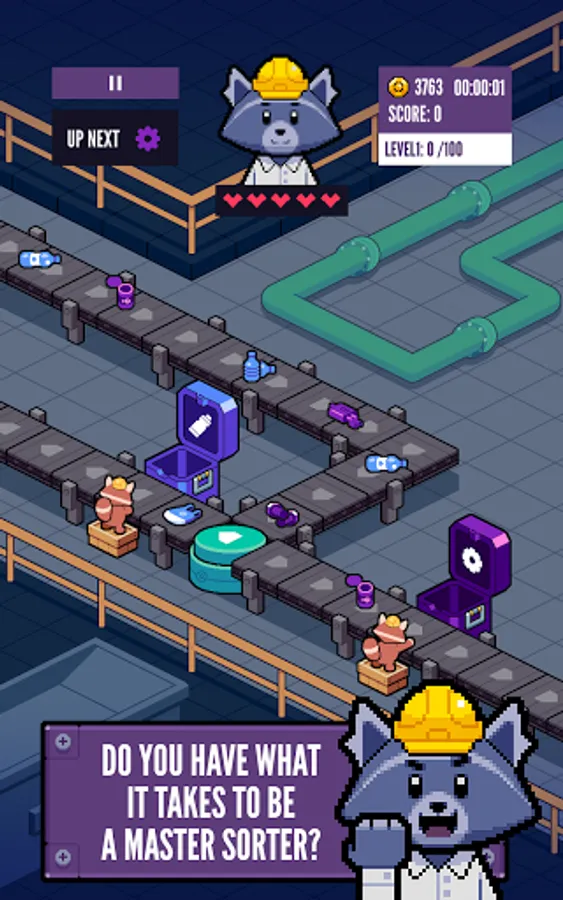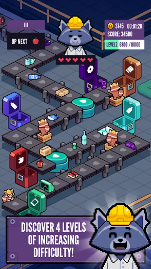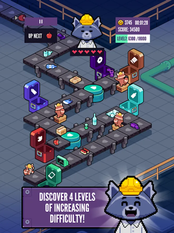 Think of this game as a kind of Tetris, but with trash, conveyor belts, and raccoons with hard hats!