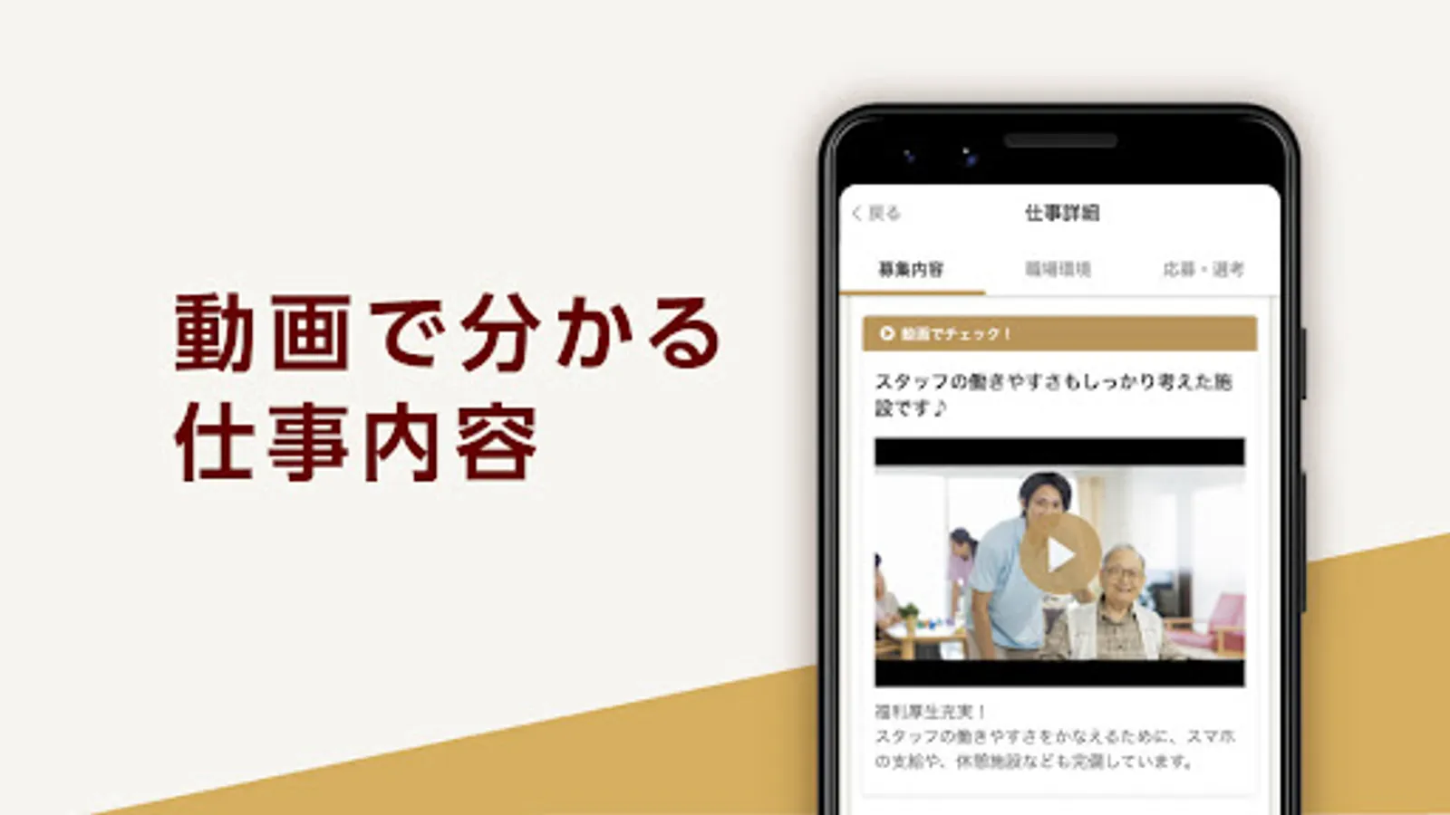 -A job information app that allows you to search for full-time employees, part-time workers, part-time workers, and dispatched workers in the long-term care industry.