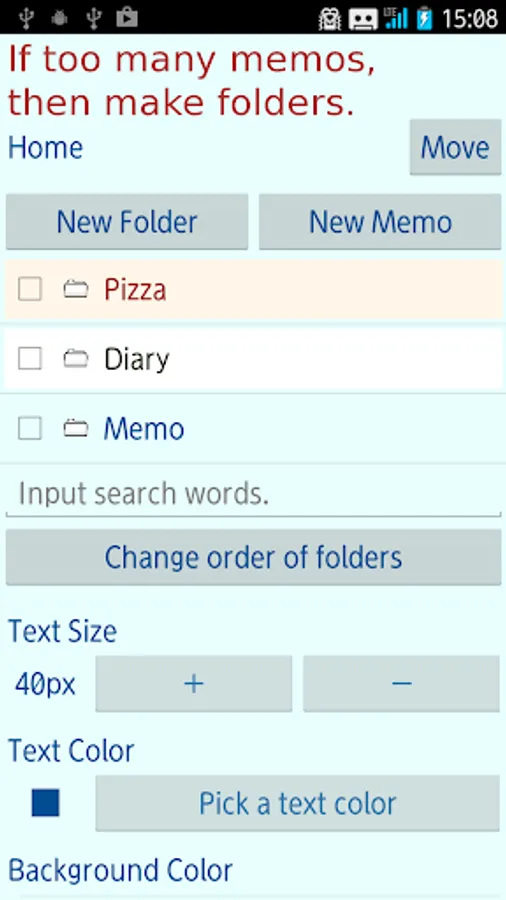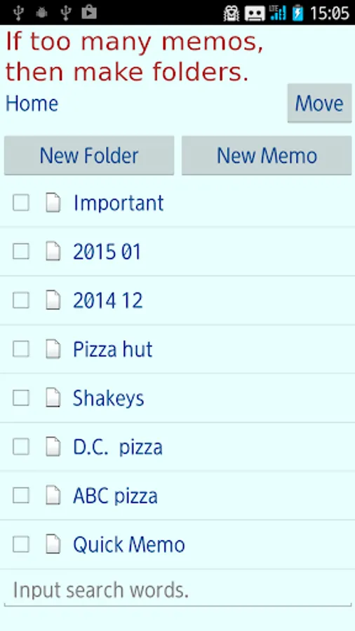 If there are too many memo in a folder, you can make folders there and put memos in order.