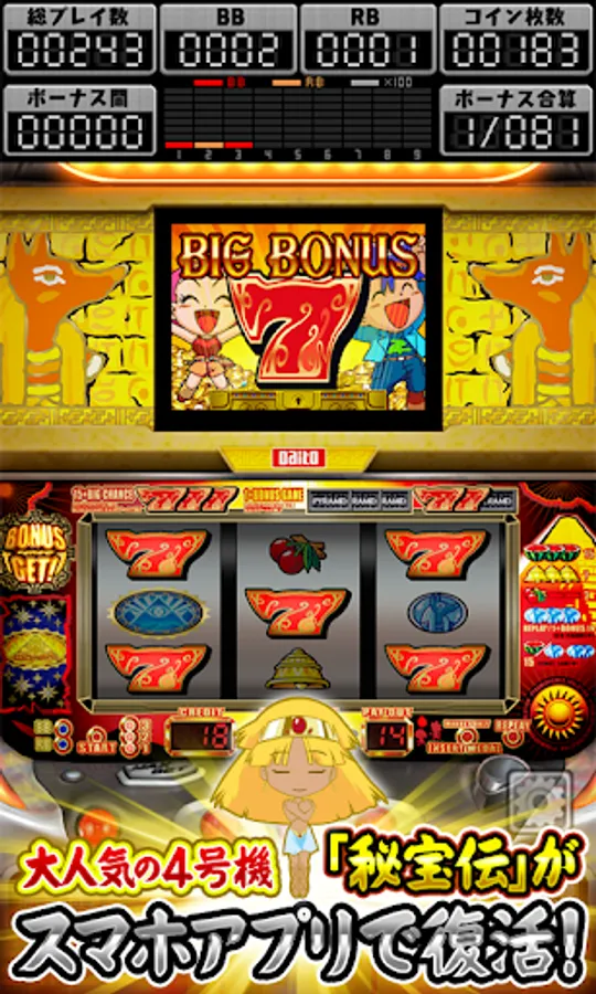 Co., Ltd. Daito Giken of popular slot machine series first generation "Treasure Legend" (2006) is finally appeared in the app!