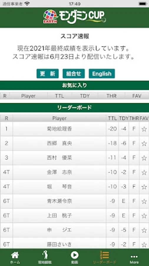 We will deliver information on the domestic women's golf tour "Earth Mondahmin Cup" held from June 22nd to 25th, 2023. In addition to real-time score reports and gallery plaza information, we will also deliver player position information and traffic information that are useful for local spectators. Please enjoy it together with watching the tournament.