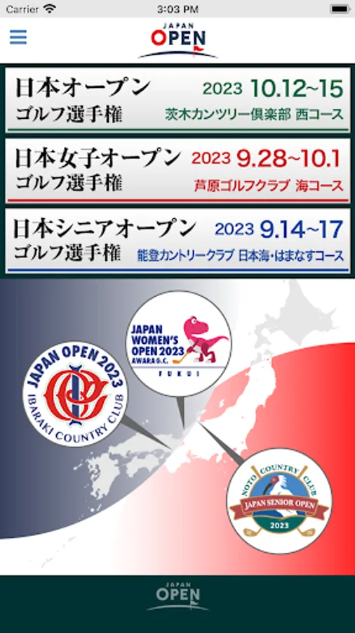 This is the official app for the Japan 3rd Open Golf Championship, certified by the Japan Golf Association. Japan Open Golf Championship (2023/10/12-10/15), Japan Women's Open Golf Championship (2023/9/28-10/1), Japan Senior Open Golf Championship (2023/9/14-9/17) We will deliver real-time score bulletins and player position information.