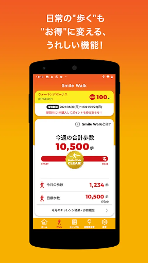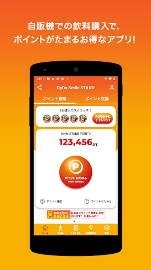 Furthermore, in addition to the scratch function where you can get up to 500 points, there is also a "Smile Walk" function that allows you to accumulate points just by walking!