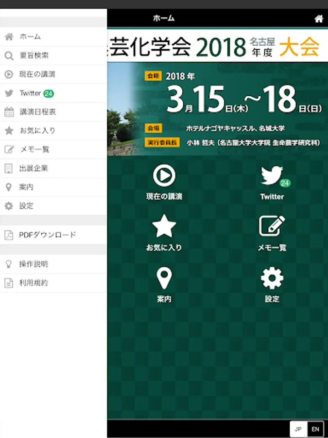 本アプリは2018年3月15日(木)~3月18日(日)に開催される「日本農芸化学会2018年度名古屋大会」の要旨閲覧用アプリです。