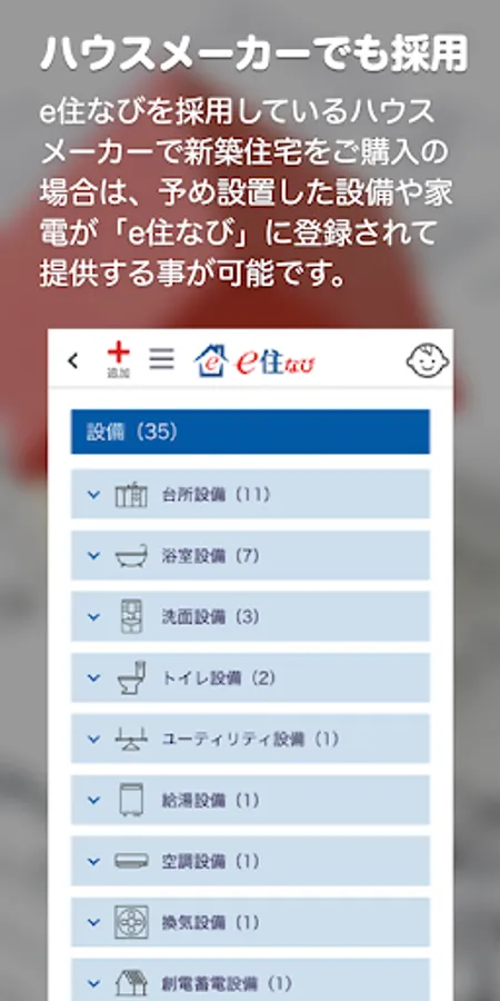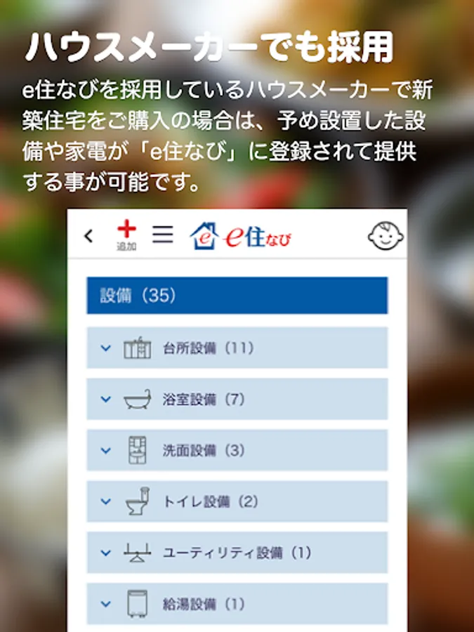 If you purchase a new house from a house maker that uses e-Sumi Navi, you can provide the equipment and home appliances that you have installed in advance by registering them in "e-Sumi Navi".