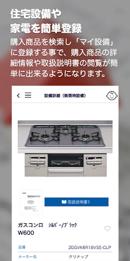 By searching for the purchased product with "e-Sumi Navi" and registering it in "My Equipment", you can easily check the detailed specifications of the purchased product and browse the instruction manual.