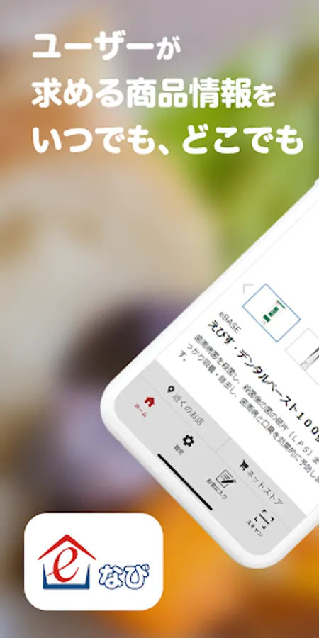 e-Food & Housing Navi is a lifestyle app that allows you to search for detailed information and how to use the abundant products of "Clothing, Food, Housing & Play" that are closely related to your life. Approximately 4 million items (as of January 2023), including general processed foods, 3 perishable items, daily necessities, OTC medicines, home appliances, stationery, clothing/personal items, sporting goods, car supplies, housing materials/equipment, etc. ), and you will be able to browse detailed product information and real stores and online stores that handle them.