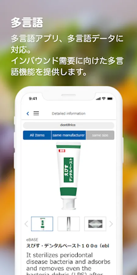 The multilingual app and e-Food Navi app, which supports multilingual data, supports three languages: Japanese, English, and Chinese (Korean is also planned). We provide multilingual functions for inbound demand recovering from the impact of the new coronavirus infection.