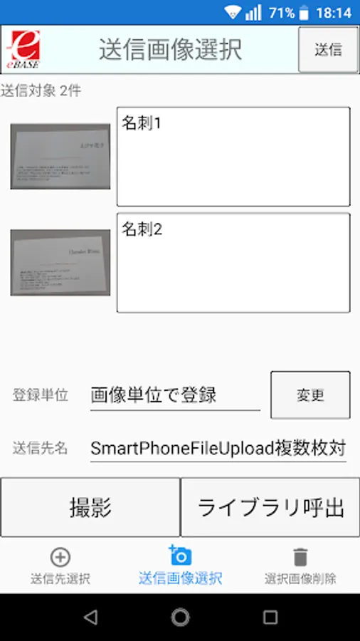 After shooting, select the registered server and tap the send button to send the photo to eBASEweb.
