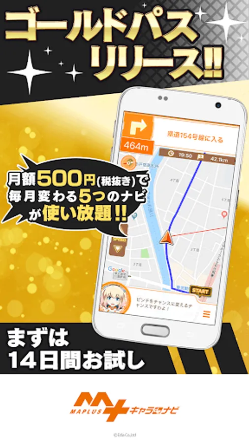 "MAPLUS Chara de Navi" is a walking / car navigation app that allows you to change the navigator and screen design that provide guidance voice.