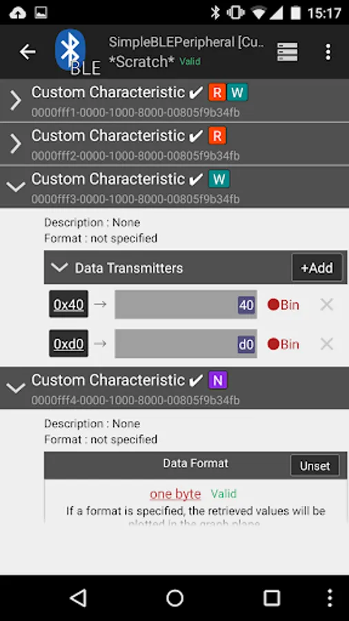 VisualLogger can visualize, save and share Bluetooth data (both BLE(GATT) and SPP).