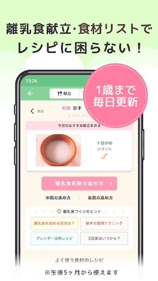 * Propose daily baby food menus! Easily manage the ingredients you ate with a list!